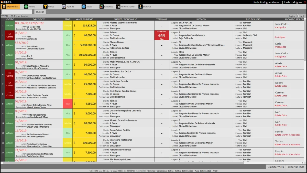 Asigna a cada abogado el expediente con permisos de acuerdo a la jurisdicción que tenga en cada caso.